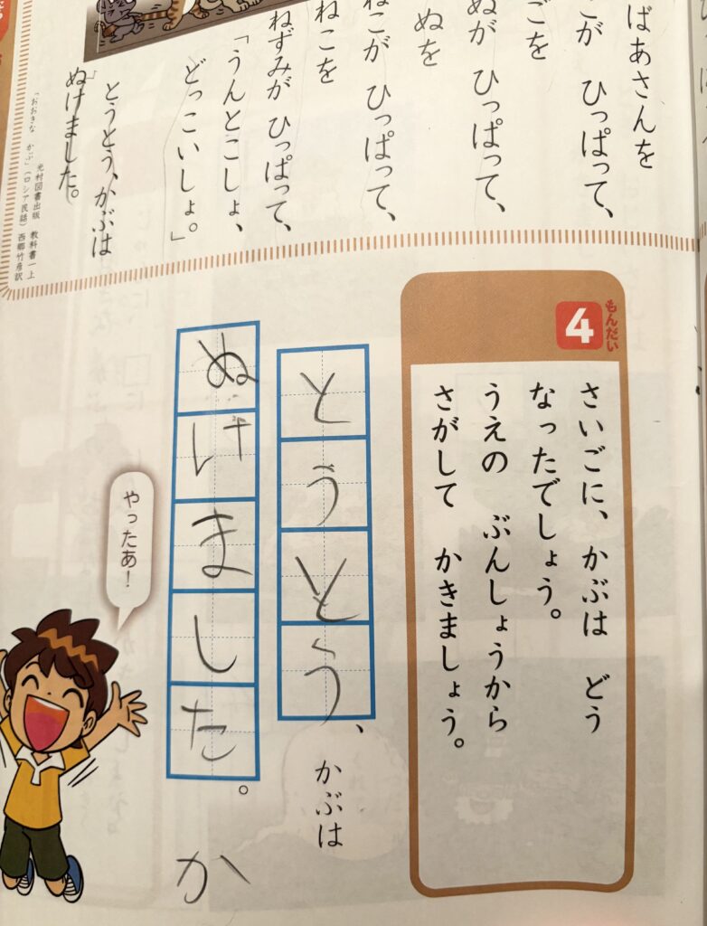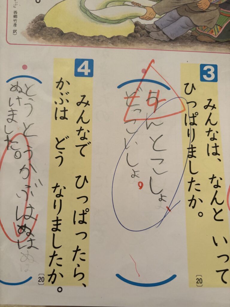 「おおきな かぶ」学習辺りから、文章読解が登場するため、国語の苦手意識を持ち始めます。しかし、内容を知っている子が大半のため、算数ほど苦手意識は感じにくい傾向があります。