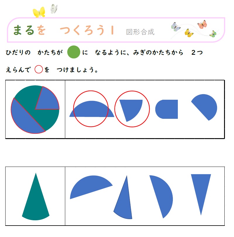 小学校に上がるにつれ、得手不得手がハッキリと表れてくる空間認知力は、後で力をつけることが難しい分野です。1年生の11月頃に学習する「かたち」として出てくる内容です。